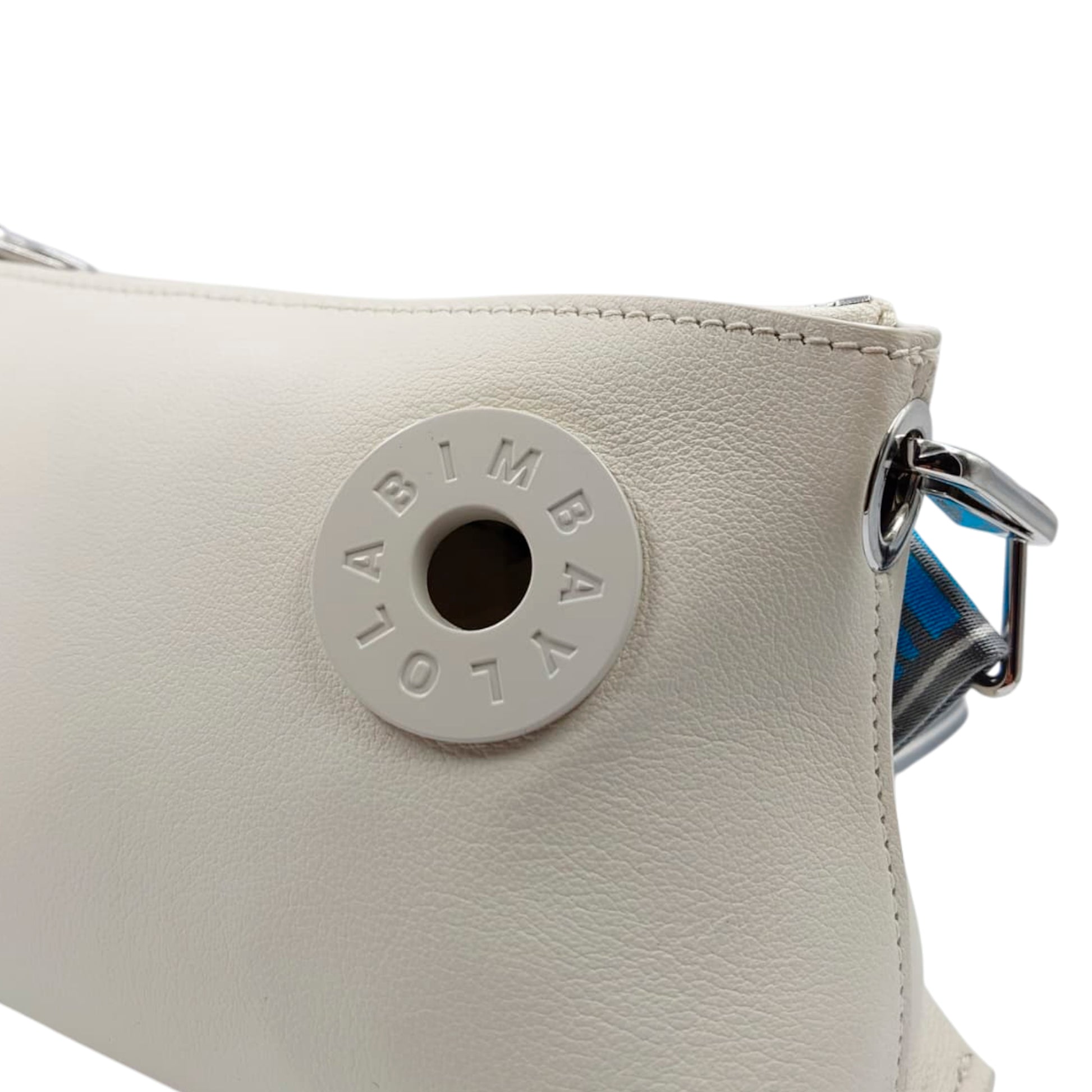 Leather shoulder bag in white. Medium-sized model with zip closure, detachable chain shoulder strap and detachable logo-printed crossbody strap. Exterior features the Chimo logo.