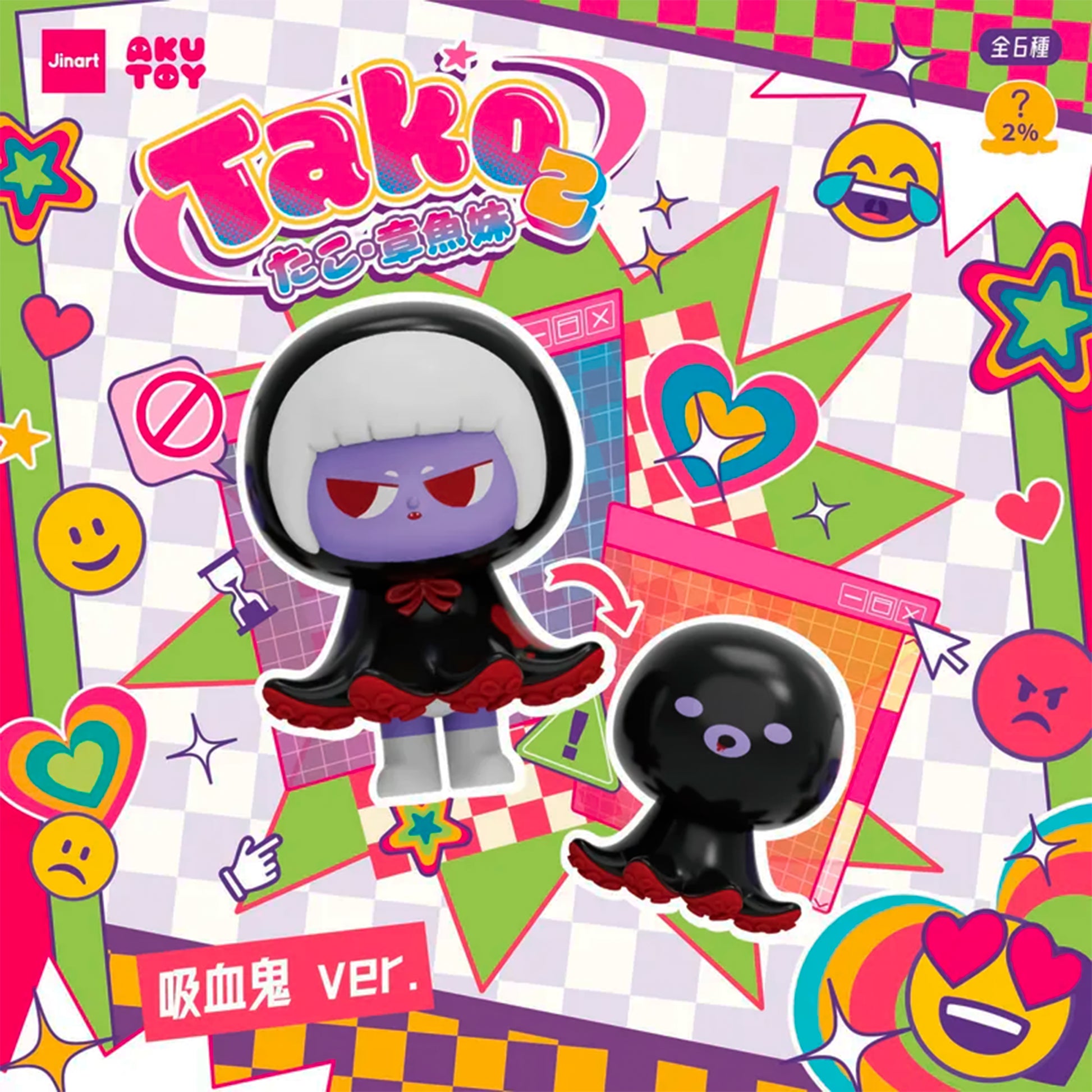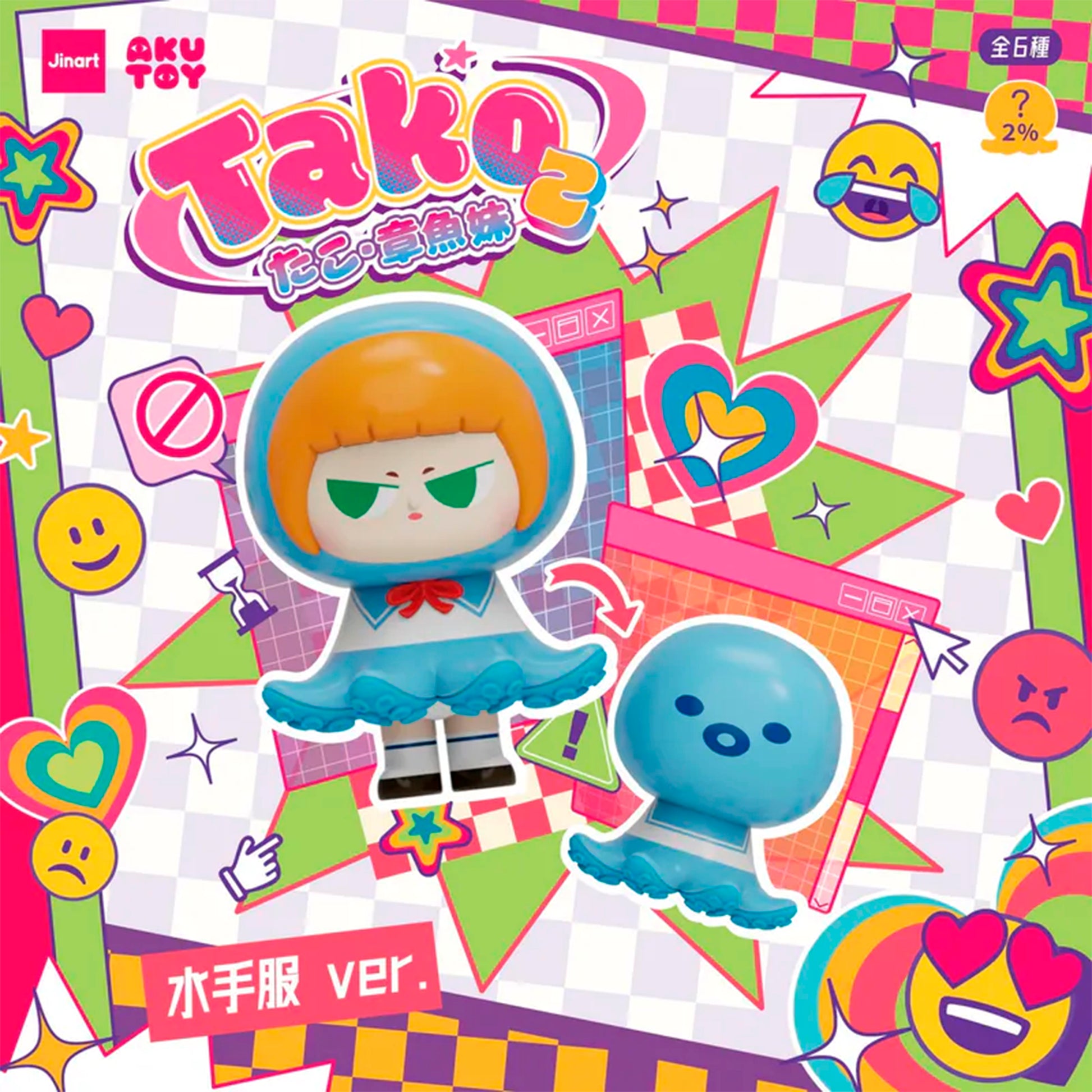 Figura coleccionable tipo blind box de la línea Tako Girl Vol. 2 de Jinart Aku Toy. Cada caja contiene una de las seis versiones disponibles, presentadas en un diseño creativo que mezcla elementos kawaii y surrealistas, con temática de niña-pulpo (Tako significa pulpo en japonés).