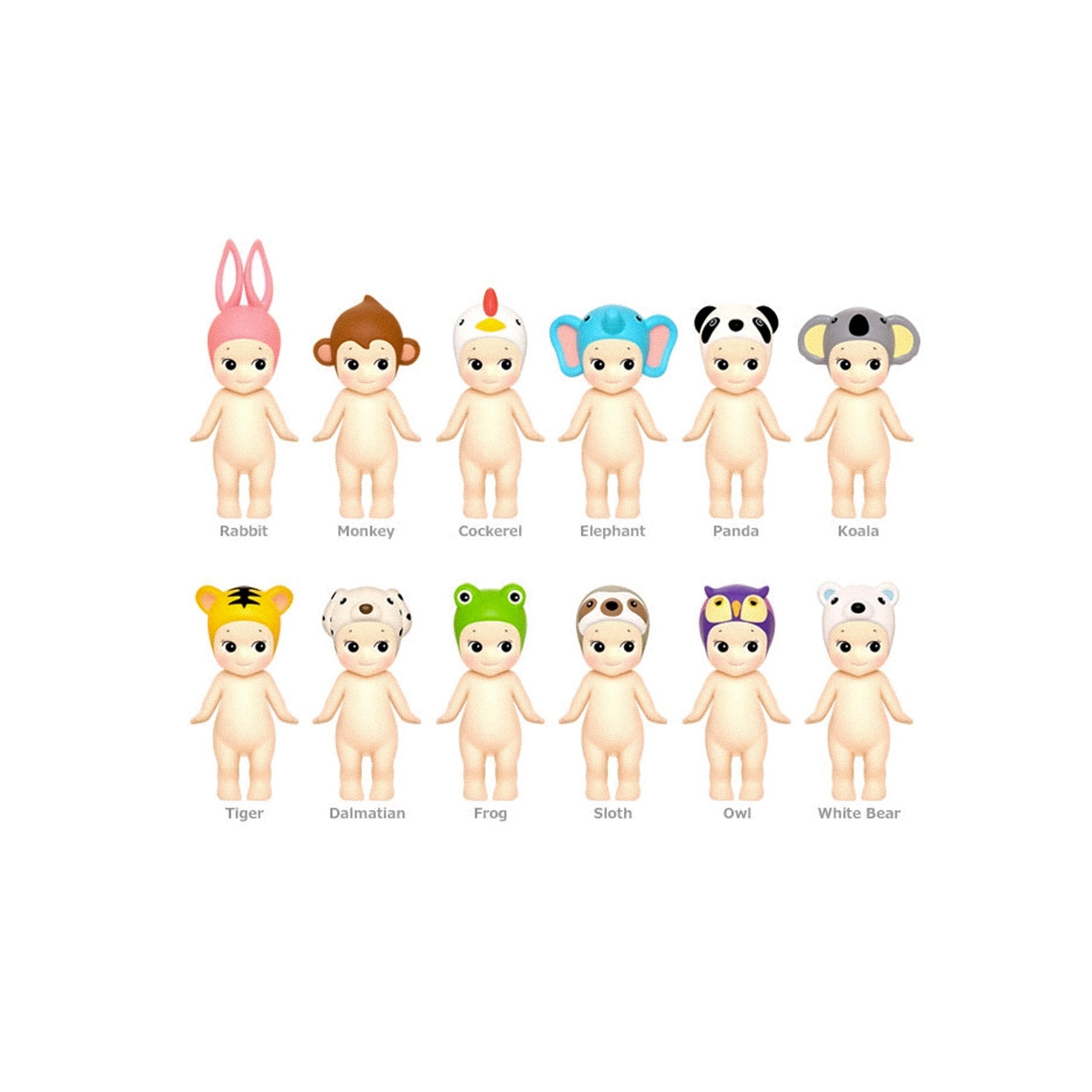 Sonny Angel mini figures wearing animal headgear. Figures come in a blind box—open to see which one you get.