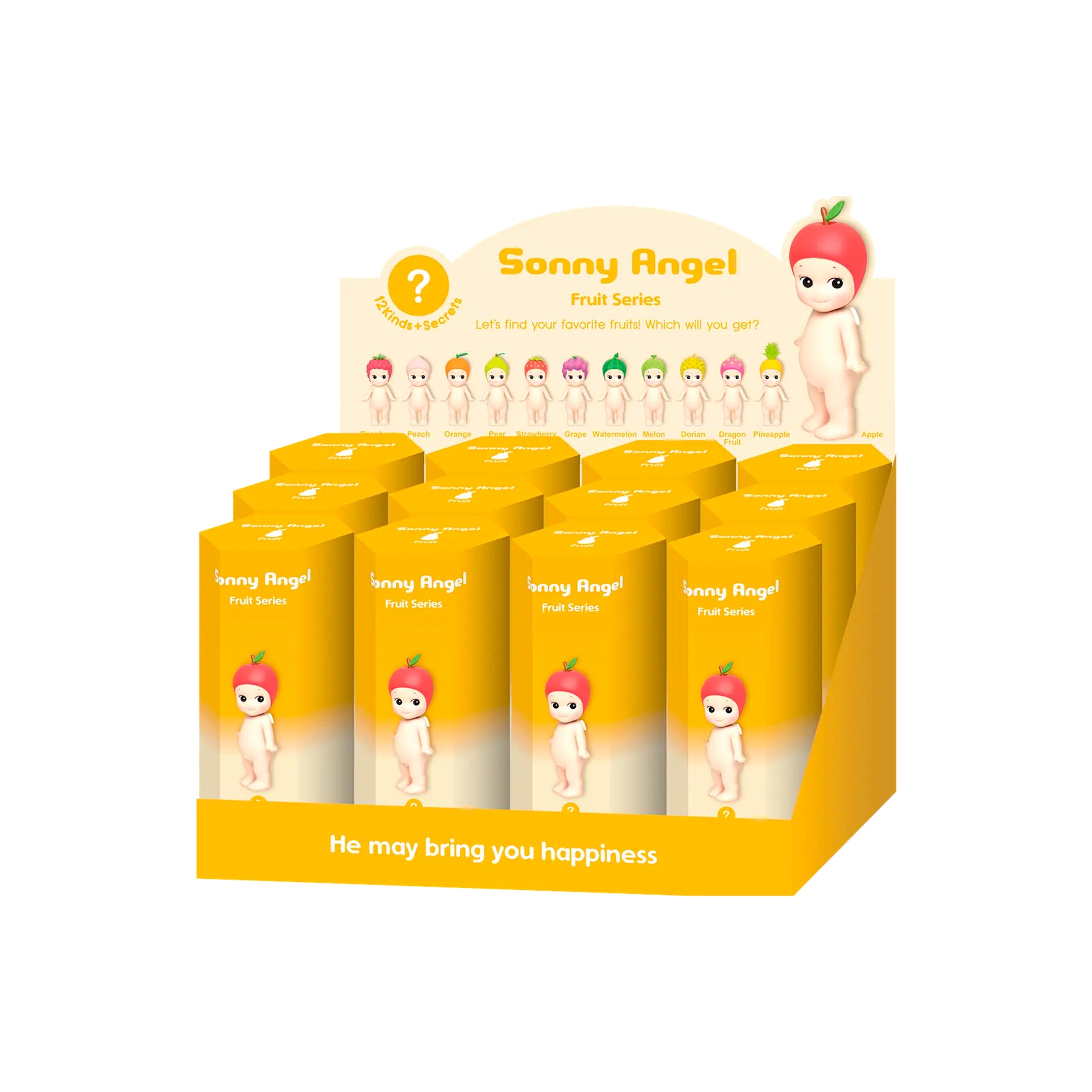 Mini figuras Sonny Angel con tocados de frutas. Las figuras vienen en caja sorpresa (blind box).